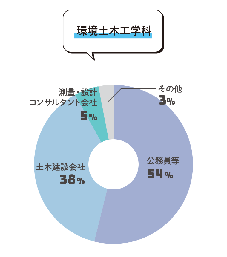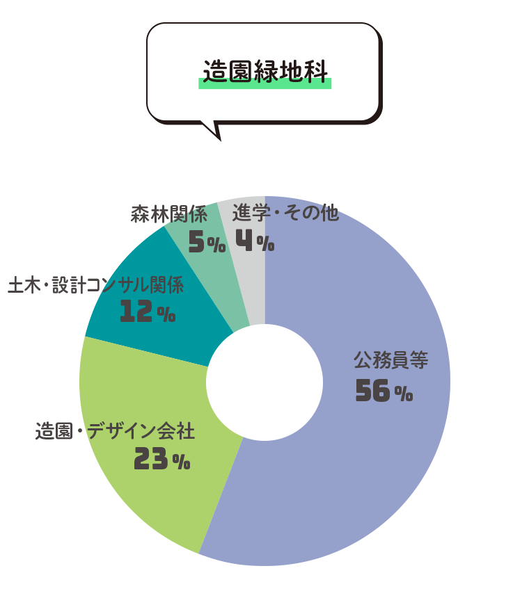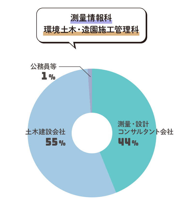 公務員は事務・警察官・消防吏員だけではありません。技術職(土木・農業土木・林業)という道もあります。技術職はなり手が少ないので、合格のチャンスが大きいです。本校は、専門学校には珍しい一般教養科目(数学・社会科学・人文科学など)を取り入れ、公務員試験を意識した内容を編成。この力は民間企業の就職にも役立ちます。